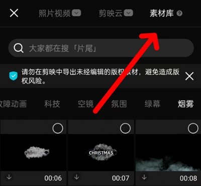 首先我们给大家介绍视频素材库的位置,打开剪映进入主界面,在上方找到"开始创作"的选项并点击它,翻转至新的页面后在最上方的功能栏中找到"素材库"选项并点击它,根据你自己的需要来寻找适合自己的素材,当然,如果剪映给我们提供的默认素材库里没有你想要的素材,你也可以在上方搜索栏里搜索你需要的素材哦。